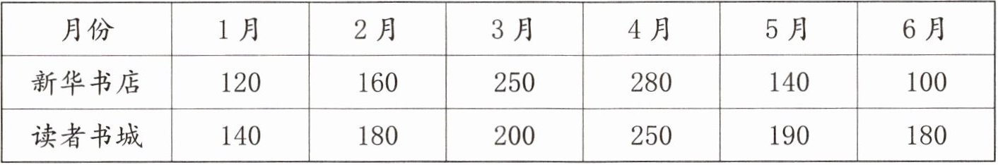2. 某地新华书店和读者书城的教育类图书上半年销售情况如下表。(单位:本)