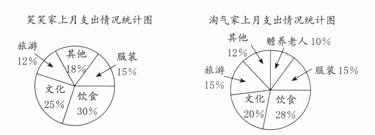 1. 笑笑家和淘气家上个月支出情况有哪些不同?
