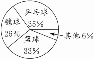 最爱乒乓球的人数占比为$35\%$,则人数为$35\%x$;最爱毽球的人数占比为$26\%$,则人数为$26\%x$。