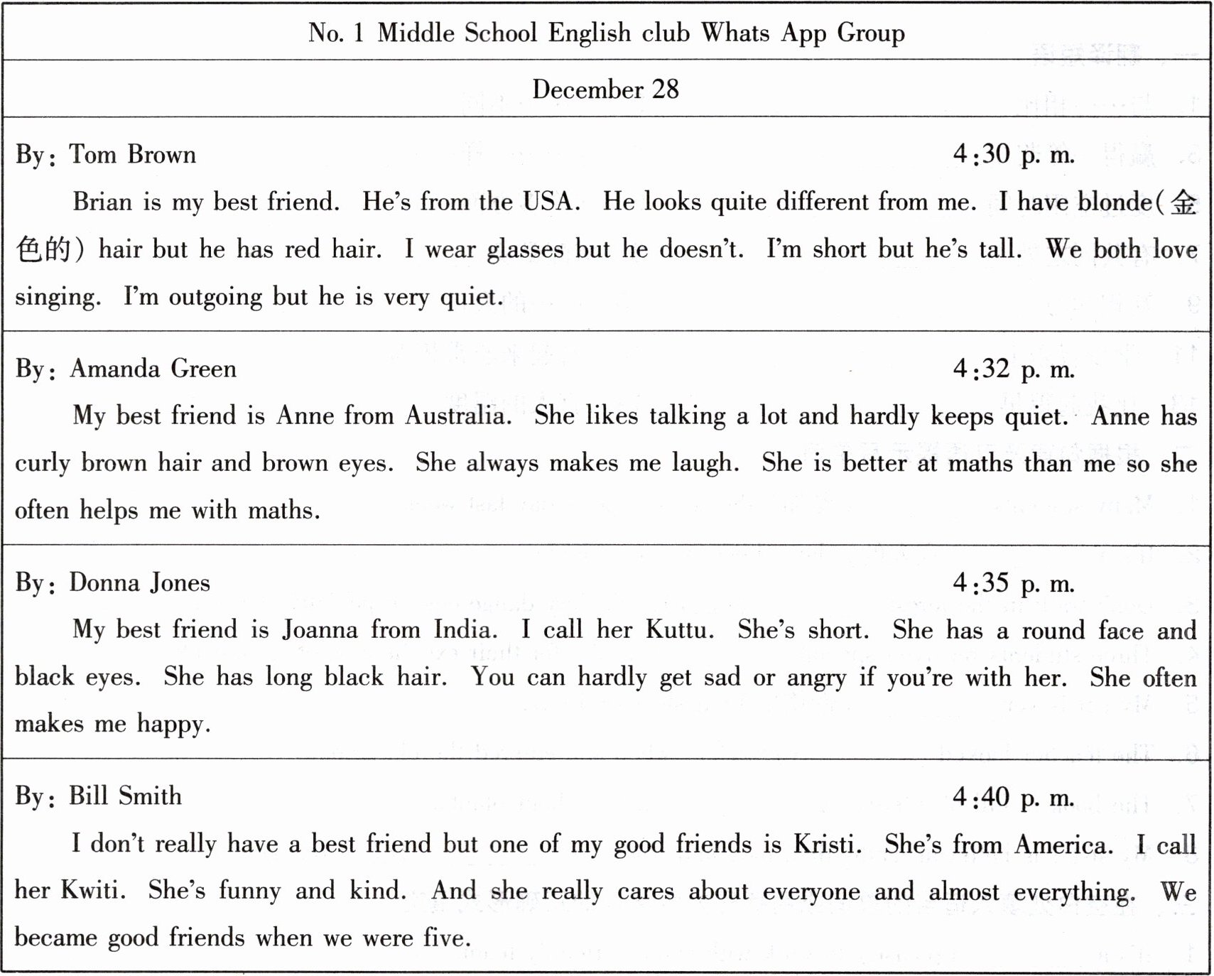) 2. According to the text, how can we describe Amanda's best friend?A. Quiet and shy. B. Tall and beautiful.