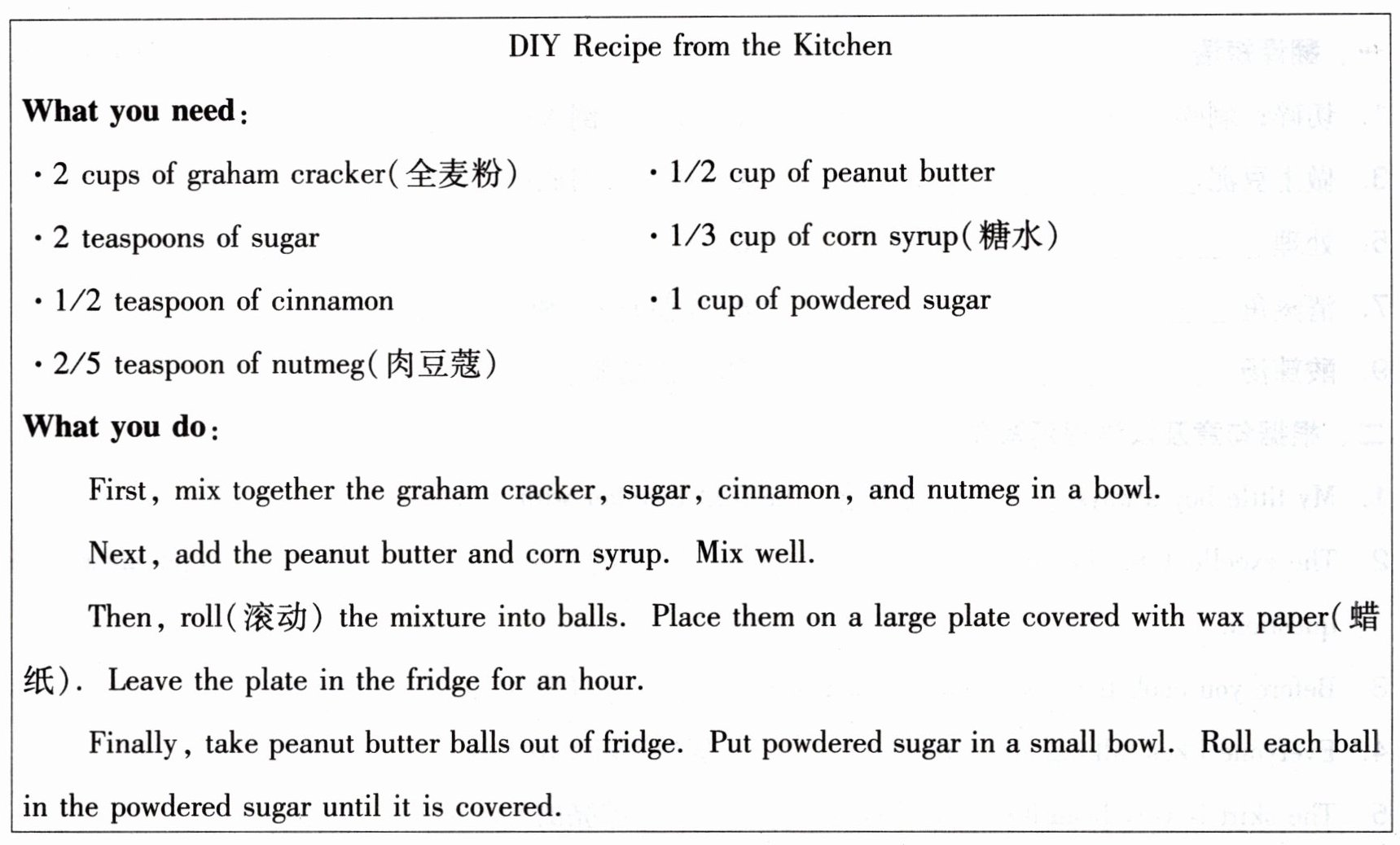 ) 4. Which of the following is TRUE about the recipe?A. We need someone to help you. B. We need to cook the peanuts.