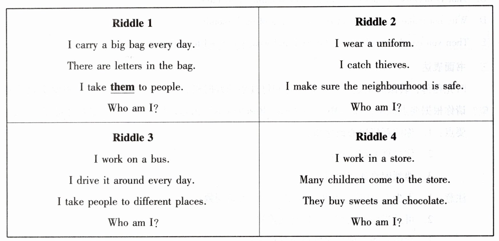 ) 1. What does the underlined word “them” in Riddle 1 refer to?A. Big bags.