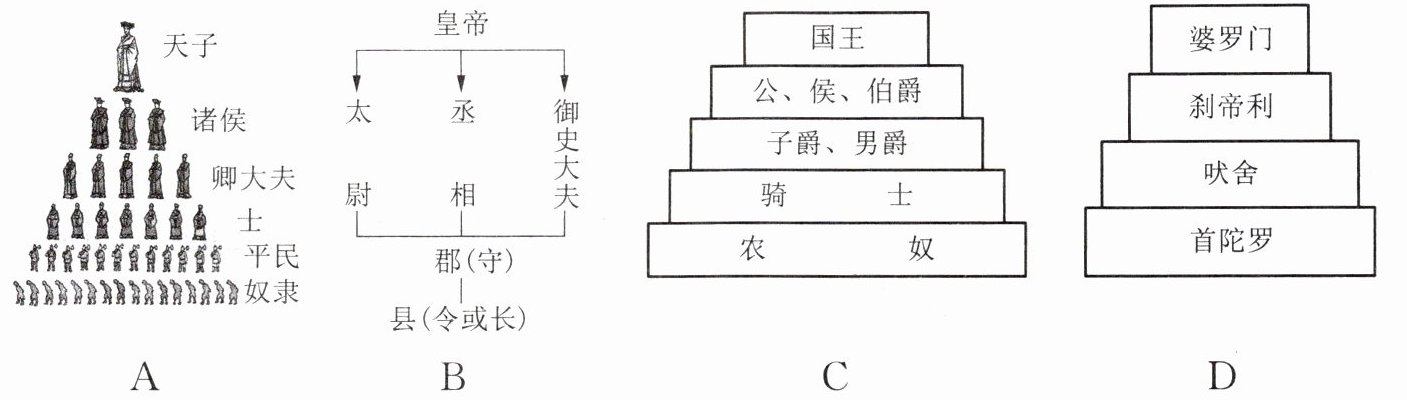 4. 下列示意图能够反映古代印度种姓制度的是( )