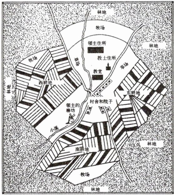 (1)西欧的封建庄园。(2)庄园的居民均为领主的佃户,包括自由的农民和缺少自由的农奴。领主占有"自营地",佃户占有"份地"。主要劳动者是佃户。(3)为领主提供劳役是佃户的基本义务。佃户要义务耕种领主的"自营地",一般每周要在自营地上劳动 3 天,剩下的时间才属于自己。佃户独立耕作份地,维持生活。领主还向佃户征收其他捐税。(4)地租剥削,农奴劳役,自给自足,以庄园为经济与政治单位。