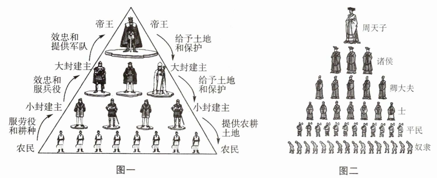 (2)材料一中的图二反映的是哪国在哪一时期开始实行的制度?这一制度的维系纽带和主从关系与图一反映的制度有什么不同?(6分)
