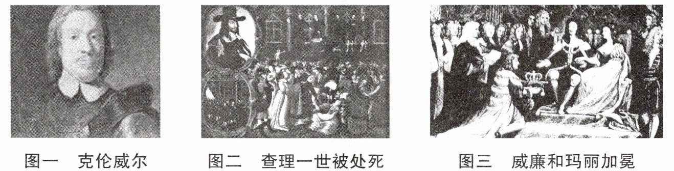 (1)英国资产阶级革命。材料一反映了革命的过程,材料二反映了革命的结果,材料三反映了革命的影响。(2)英国资产阶级革命的过程(或处死查理一世、克伦威尔军事独裁、斯图亚特王朝复辟、光荣革命)。(核心词出现即可)(3)特点:保留王位,限制王权。束缚的方式:限制了国王在政治、经济、宗教方面的权力,规定议会拥有最高权力。名称和标志:君主立宪制;《权利法案》的颁布。(4)影响:确立了君主立宪制的资本主义政治制度,它使社会由人治走向法治;使英国走上资本主义道路,最早开始工业革命。对马克思的话的理解:英国资产阶级革命推动了欧洲资产阶级革命的发展。