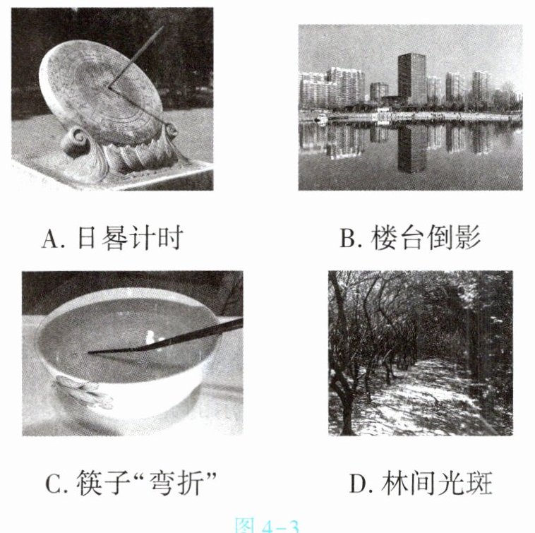 2. (★★)(双选)(2024·陕西改编)如图 4 - 3 所示,涉及的光现象原理相同的两项是【