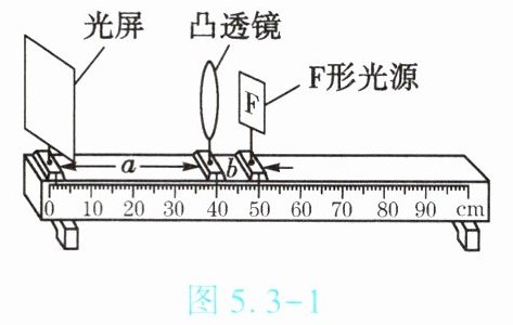 3. (★★)探究发光物体通过焦距为12cm的凸透镜成像的规律时,F形光源、凸透镜、光屏位置如图5.3-1所示,此时【