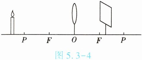 1. (★★★)如图5.3-4所示,小明同学在做“探究凸透镜成像的规律”实验时,烛焰在光屏上成了一个清晰的像(图中未画出,P为凸透镜二倍焦距点),下列说法正确的是【