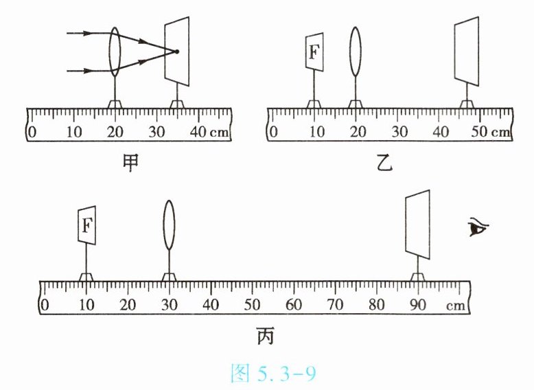(填“能”或“不能”)直接看到F形光源的实像。(4)在图5.3-9丙中,保持凸透镜的位置不变,如果F形光源向左移动5cm,为了在光屏上得到一个清晰的像,光屏应该向