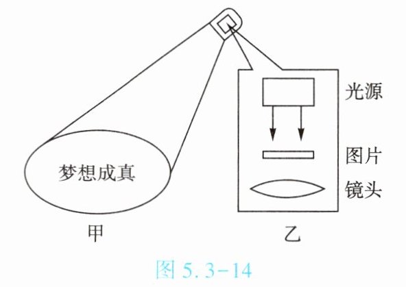 6. (★★★)(2024·苏州改编)如图 $5.3-14$ 甲所示是公共场所的宣传投影灯,装在高处的投影灯照在地面上出现图案,其内部结构如图 $5.3-14$ 乙所示。下列说法正确的是【