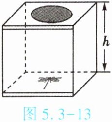 5. (★★★)小明用透明塑料盒设计了一个昆虫标本观察器,如图 $5.3-13$ 所示。盒底上放标本,盒盖上嵌入一凸透镜。有焦距为 $5\ cm$ 和 $10\ cm$ 的两种凸透镜,为了在盒盖上方附近,通过凸透镜观察到标本正立、放大的像,凸透镜焦距 $f$ 与盒高 $h$ 选择合理的是【