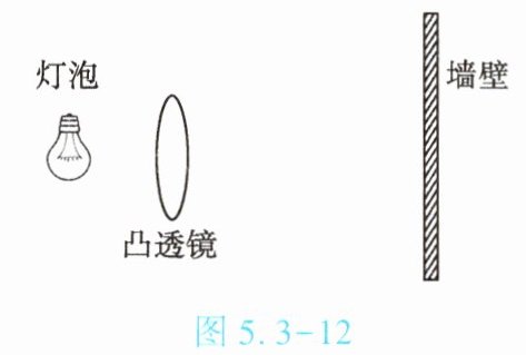 2. (★★)如图 $5.3-12$ 所示,在发光的灯泡附近放置一凸透镜,在远处的墙壁上出现了灯丝清晰的像。关于此像,下列说法正确的是【