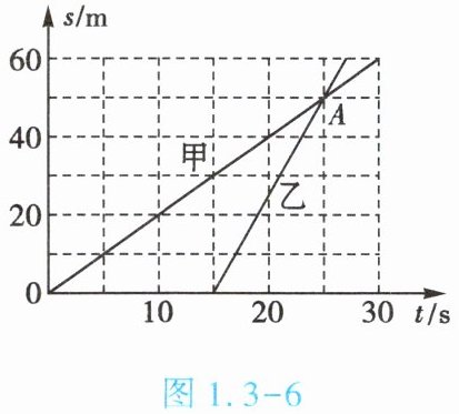4. (★★★) 甲、乙两车沿笔直的公路从同一地点同向行驶,图 1.3 - 6 所示的图线分别表示它们运动的路程随时间的变化规律。