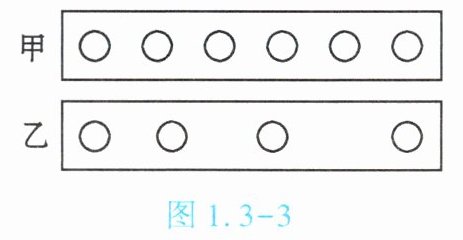 5. (★★) 用“频闪摄影”可记录物体相隔同样时间的不同位置。如图 1.3 - 3 所示是甲、乙两个网球向右运动时的频闪照片,图甲中相邻两位置距离相等。由照片可知,