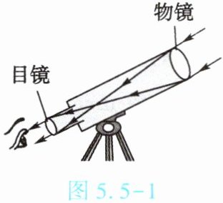 (3) 如图5.5 - 1所示,这样的望远镜的放大倍率= ____(用物镜焦距$f_{物}和目镜焦距f_{目}$表示)。