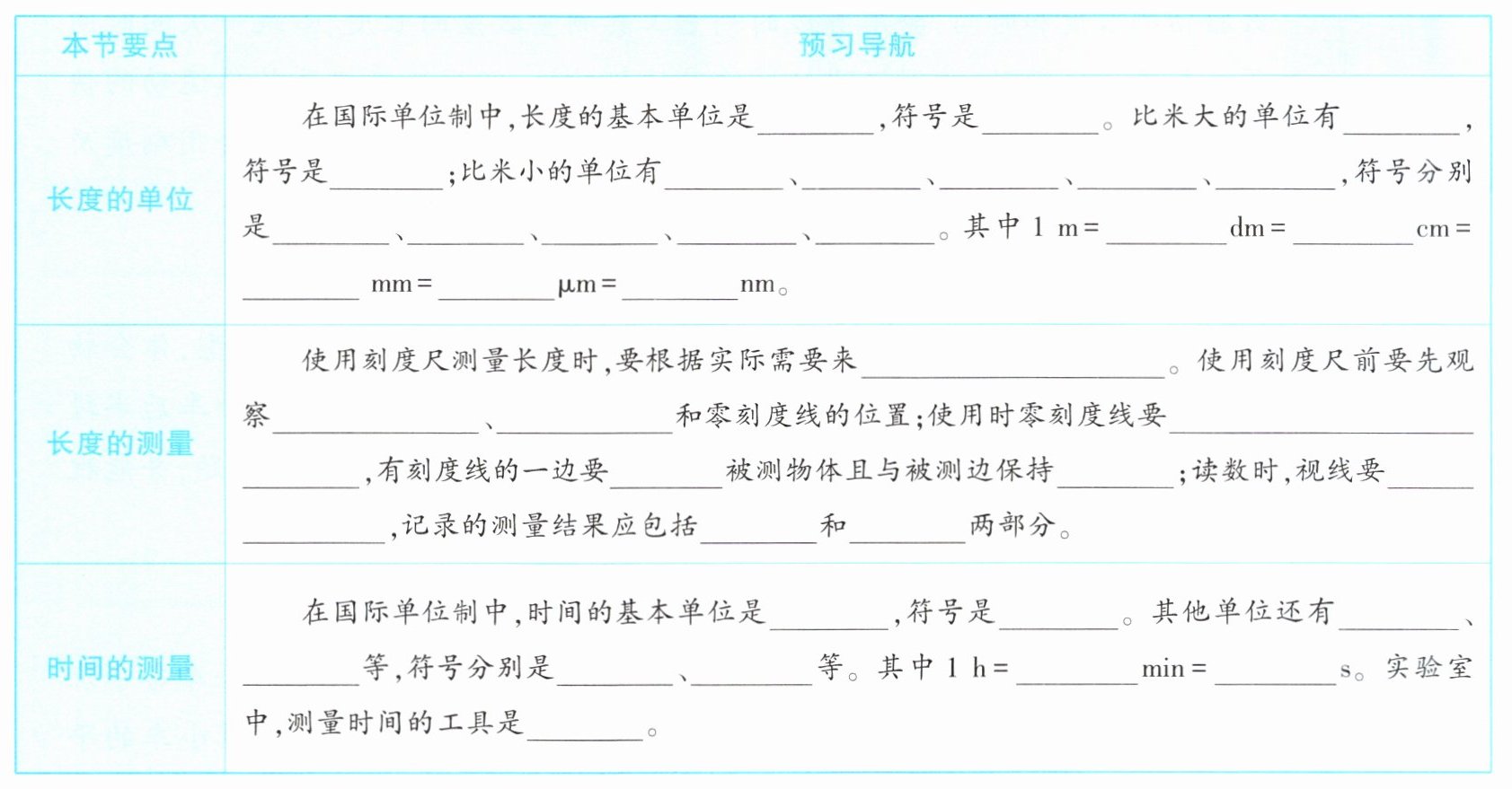 请同学们预习本节课教材内容,完成下表。