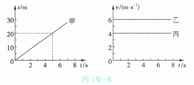 8. (★★★)甲、乙、丙三辆小车同时、同地向东运动,它们运动的图像如图 1W - 8 所示,由图像可知: