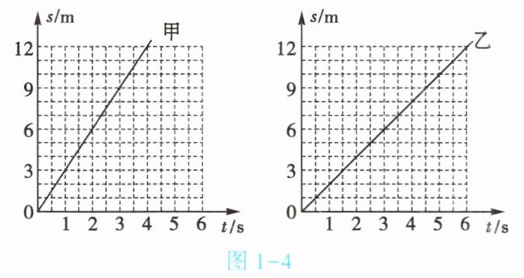 5. (★★★)(双选)P、Q是同一直线上相距12m的两点,甲从P点、乙从Q点同时沿直线相向而行,它们运动的s - t图像如图1 - 4所示,分析图像可知【