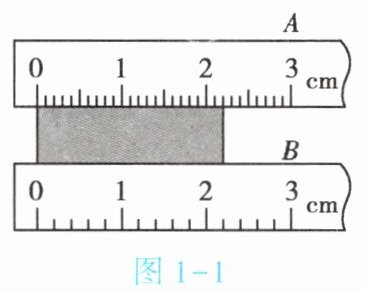 1. (★★)如图1 - 1所示,用A、B两把刻度尺测同一木块的长度,就分度值而言,