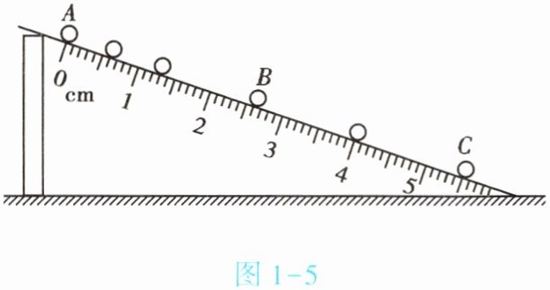 7. (★★★)(双选)小明在测量小球的平均速度时,让小球从斜面A点由静止滚到C点,并用照相机每隔0.1s拍摄一次,频闪照片如图1 - 5所示,则下列说法正确的是【