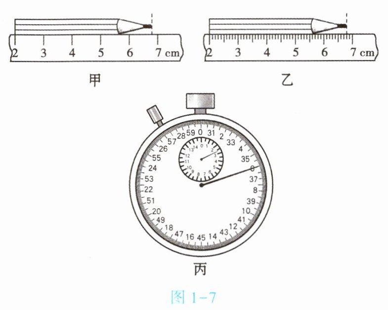 1. (★★★)如图1 - 7所示,用两种不同规格的刻度尺测量同一支铅笔的长度,图甲中铅笔的长度是