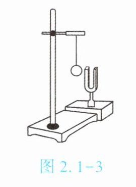 1. (★★)如图2.1-3所示,系在细绳上的乒乓球在竖直方向静止不动,将正在发声的音叉慢慢靠近并接触乒乓球,观察到乒乓球被弹起,说明声音是由物体