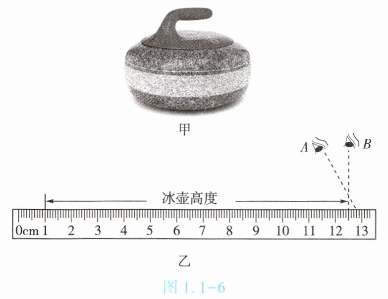 4. (★★)如图 1.1 - 6 甲是比赛所用冰壶,其高度如图 1.1 - 6 乙所示,读数时视线正确的是