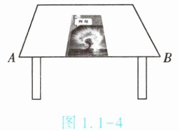 2. (★★)(2024·齐齐哈尔)如图 1.1 - 4 所示,小军完成学习任务后,将物理课本放在桌面上,请你结合物理课本的宽度,估算桌面 $AB$ 边的长度,约为【