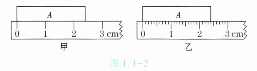 3. (★★)如图 1.1 - 2 所示,用分度值不同的刻度尺测量物体 $A$ 的长度。