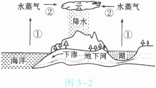 2. (★★)图 3-2 是水循环示意图。图中过程①发生的物态变化是