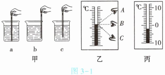 (填“a”“b”或“c”);温度计读数方法如图 3-1 乙所示,其中正确的是B
