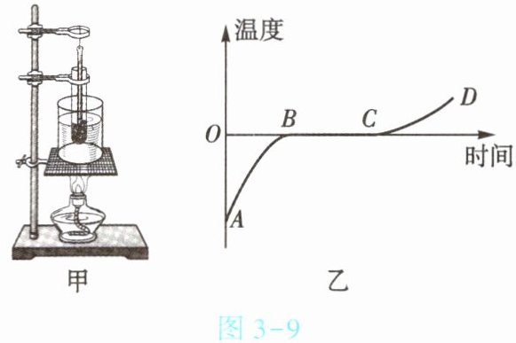 8. (★★★)(2024·武汉改编)某同学利用如图 3-9 甲所示的实验装置探究冰熔化时温度的变化规律,得到了如图 3-9 乙所示的温度随时间变化的图像。实验中要控制好烧杯中水的温度。