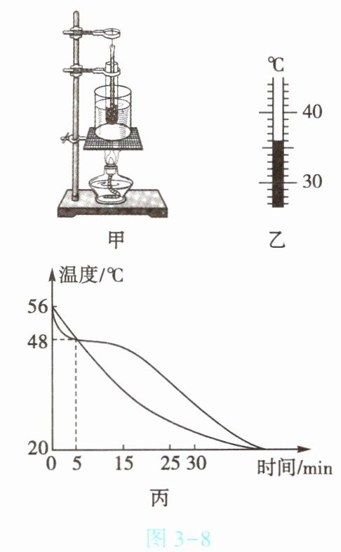 (1) 如图 3-8 乙所示,温度计显示的是石蜡在某时刻的温度,它的示数是