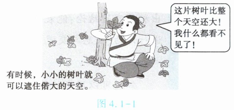 3. (★★)(双选)小明在学习“光的传播”时,看到老师演示的一个实验,过程如下:①用激光笔射向水中,观察到光路是一条直线(如图4.1-2所示);②在A点处用漏斗向水中慢慢注入浓盐水,观察到光路发生了弯曲;③经搅拌后,观察到光路又变直了。小明根据上述现象得出的结论,正确的是【