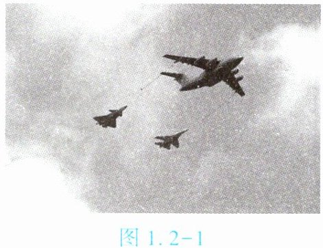 3. (★★)如图 1.2 - 1 所示,空中加油时,受油机的飞行员看到前面的加油机纹丝不动,则飞行员选择的参照物是【