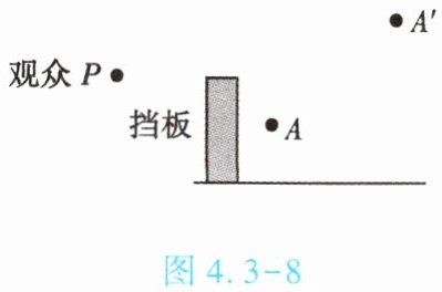 5. (★★★)“仙女飞天”魔术表演中,位于P点的观众看到云雾中漫舞的仙女A',实质是挡板后的演员A在平面镜中的虚像,如图4.3-8所示。请作出平面镜的位置,并完成P点观众看到仙女的光路图。