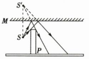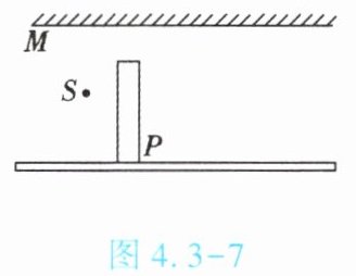 4. (★★★)如图4.3-7所示,在某房间的天花板上装有平面镜M,S为一灯泡,P为不透明的墙。请画出灯泡发出的光经平面镜反射后,能够照亮墙右侧区域的光路图。