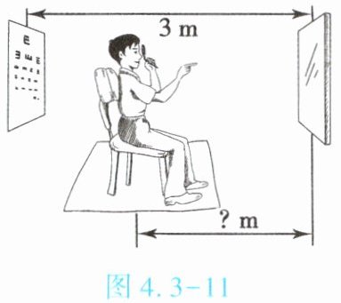 2. (★★)视力检测时要求被测的人与视力表的距离为 5 m。如图 4.3 - 11 所示,视力表与平面镜的距离是 3 m。为满足测量要求,人与平面镜的距离应为【