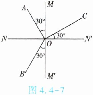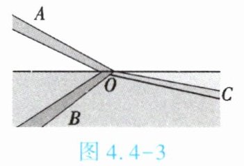 3. (★★)如图4.4-7所示是一束光射到空气和玻璃的界面后,在两种物质中传播的路线,相互垂直的两条直线分别表示界面和法线。由图可知,入射光线是