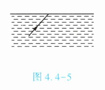 5. (★★)光线从水中射入空气中,在图4.4-5中画出反射光线和折射光线的大致光路。