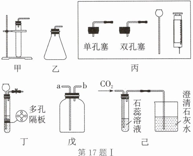 。若用戊装置收集二氧化碳$,$请设计验满该气体的实验方案:将燃着火柴置于b导管口,若火柴熄灭,则二氧化碳已集满