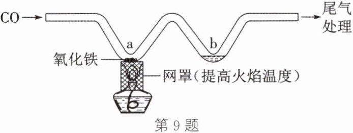 9. 利用如图所示的实验装置模拟工业炼铁。下列说法正确的是(