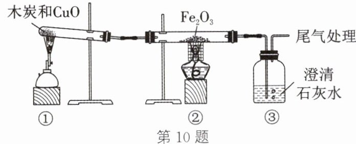 10. (2024·镇江科技新城实验学校段考)用如图装置研究足量木炭和 CuO 的反应。下列说法不正确的是(