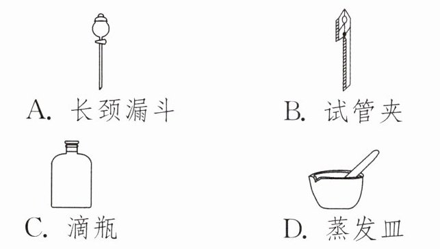 B [易错分析]选错答案的原因是未能正确区分形状相近的仪器。一定要正确区分形状相近的仪器,可对比起来记忆,如长颈漏斗和分液漏斗、试管夹和铁夹、滴瓶、细口瓶和广口瓶、表面皿和蒸发皿等。在做题时,一定要仔细分析仪器形状的特点,准确给出仪器名称。