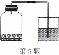 5. 取一块废旧的铁丝网,将铁丝网剪成几小片,用稀盐酸除去铁锈后,放入试剂瓶中。如图,在试剂瓶中加入约10mL浓食盐水,塞紧带导管的单孔塞后,将导管的另一端伸入滴有红墨水的水中,过一段时间后,观察现象。回答下列问题。