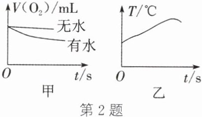 2. 如图为铁钉生锈过程中,实验装置内各项数据的变化曲线。下列说法错误的是 (