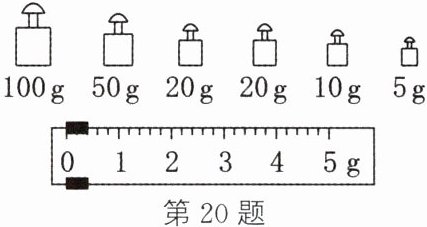 20. 托盘天平是一种精密测量仪器,某实验室托盘天平的配套砝码及横梁标尺如图所示。