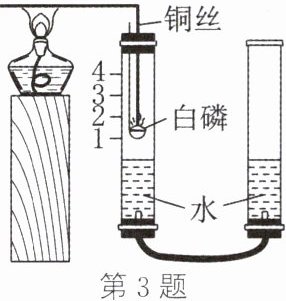 3. 小亮同学设计了如图所示的装置测定空气中氧气的含量。下列关于该实验的说法错误的是(已知:白磷在空气中燃烧的反应与红磷一致)(