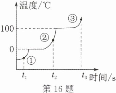 16. 一定条件下在密闭容器里加热冰,温度和时间的关系如图所示,①②③表示水在不同时刻的存在状态。